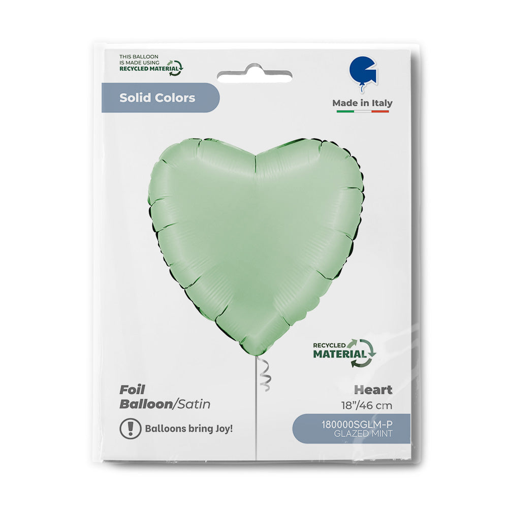 Soft, elegant, and beautifully understated, this 18 inch Satin Glazed Mint Heart Foil Balloon features a gentle mint-green tone with a smooth satin finish. Its classic heart shape makes it perfect for weddings, baby showers, spring celebrations, anniversaries, pastel-themed events, and refined balloon décor.