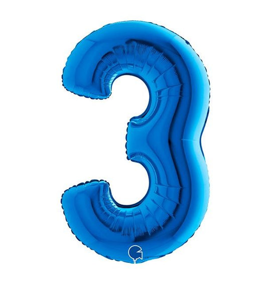 Number 3 Blue 40" Foil Balloon Packaged