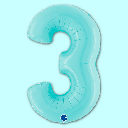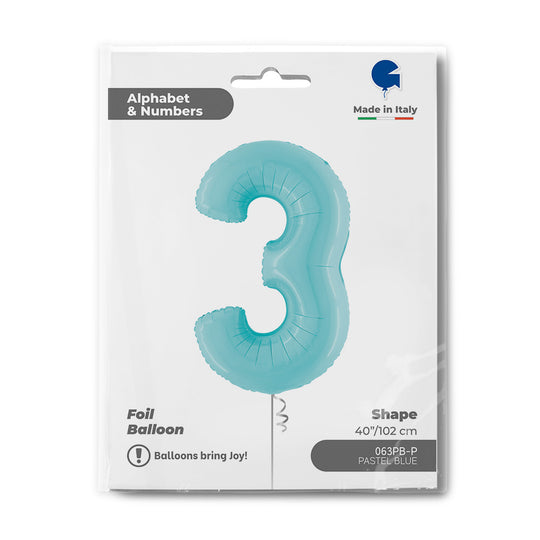 Number 3 Pastel Blue 40" Foil Balloon Packaged