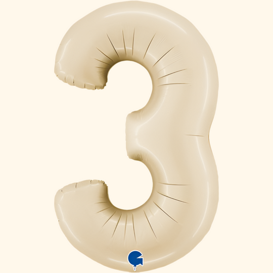 Number 3 Satin Cream 40" Foil Balloon Packaged