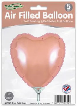Oaktree 9inch Rose Gold Heart Packaged x 5pcs