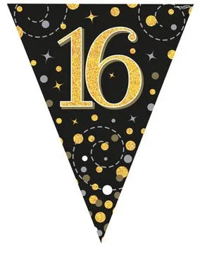 Oaktree Party Bunting Sparkling Fizz 16 Black & Gold Holographic 11 flags 3.9m