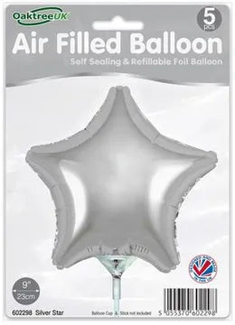 Oaktree 9inch Silver Star Packaged x 5pcs