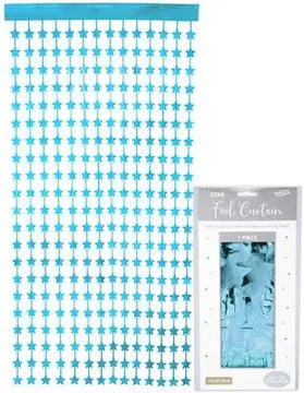 Oaktree Star Foil Door Curtain 1m x 2m Metallic Lt Blue