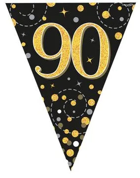 Oaktree Party Bunting Sparkling Fizz 90 Black & Gold Holographic 11 flags 3.9m