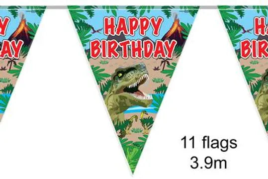 Oaktree Party Bunting Jurassic Dinosaur Happy Birthday 11 flags 3.9m