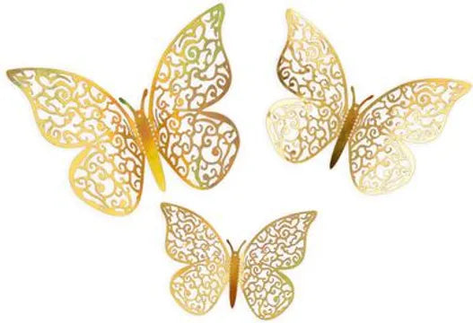3D Adhesive Butterflies x 12 Gold Iridescent