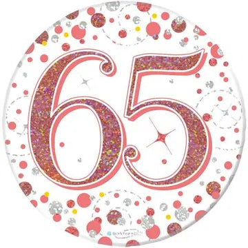 Oaktree 3inch Badge 65th Birthday Sparkling Fizz Rose Gold Holographic