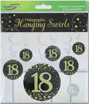 Oaktree Sparkling Fizz Hanging Swirls 18th Black / Gold 6pcs