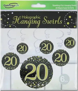 Oaktree Sparkling Fizz Hanging Swirls 20th Black / Gold 6pcs