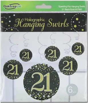 Oaktree Sparkling Fizz Hanging Swirls 21st Black / Gold 6pcs