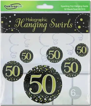 Oaktree Sparkling Fizz Hanging Swirls 50th Black / Gold 6pcs