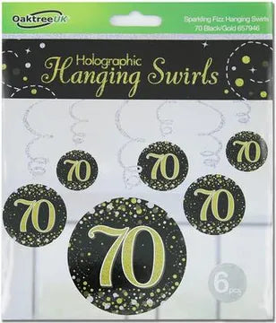 Oaktree Sparkling Fizz Hanging Swirls 70th Black / Gold 6pcs