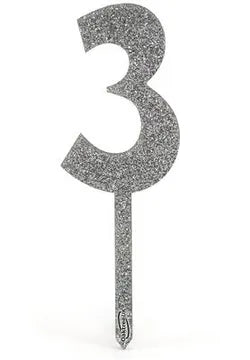 Oaktree Acrylic Silver Glitter Cake Topper No.3 H150mm x W49mm