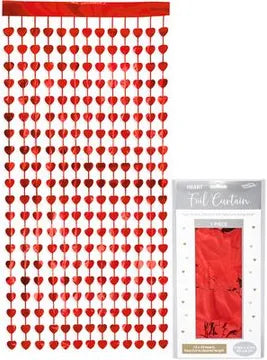 Oaktree Heart Foil Door Curtain 0.90m x 2.50m Metallic Red