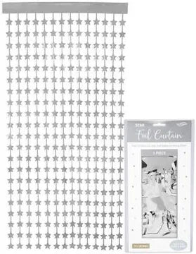 Oaktree Star Foil Door Curtain 1m x 2m Metallic Silver