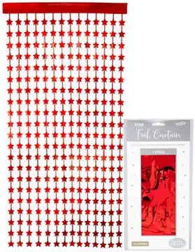 Oaktree Star Foil Door Curtain 1m x 2m Metallic Red