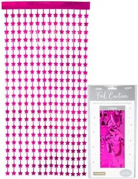 Oaktree Star Foil Door Curtain 1m x 2m Metallic Fuchsia