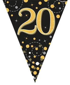 Oaktree Party Bunting Sparkling Fizz 20 Black & Gold Holographic 11 flags 3.9m