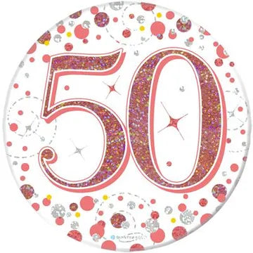 Oaktree 3inch Badge 50th Birthday Sparkling Fizz Rose Gold Holographic