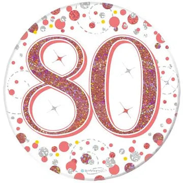 Oaktree 3inch Badge 80th Birthday Sparkling Fizz Rose Gold Holographic