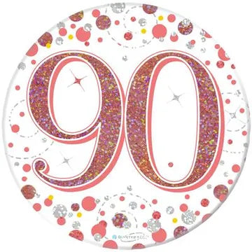 Oaktree 3inch Badge 90th Birthday Sparkling Fizz Rose Gold Holographic