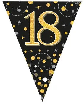 Oaktree Party Bunting Sparkling Fizz 18 Black & Gold Holographic 11 flags 3.9m