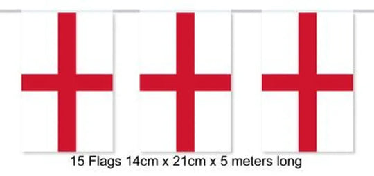 Oaktree Party Bunting Rectangle St George’s Cross 14 x 21cm flags 5m 15 flags