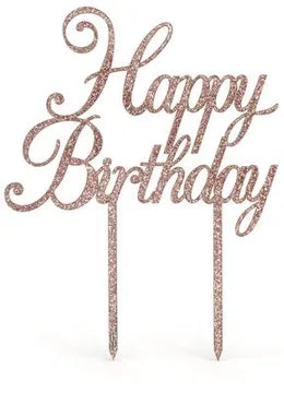 Oaktree Acrylic Rose Gold Glitter Cake Topper Happy Birthday H147mm x W160mm