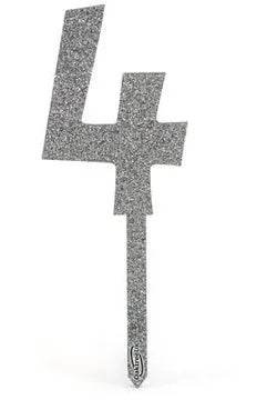 Oaktree Acrylic Silver Glitter Cake Topper No.4 H150mm x W55mm
