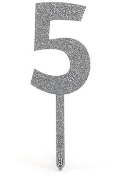 Oaktree Acrylic Silver Glitter Cake Topper No.5 H150mm x W50mm