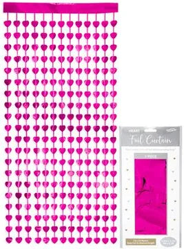 Oaktree Heart Foil Door Curtain 0.90m x 2.50m Metallic Fuchsia