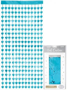 Oaktree Heart Foil Door Curtain 0.90m x 2.50m Metallic Lt Blue