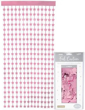 Oaktree Star Foil Door Curtain 1m x 2m Metallic Lt Pink