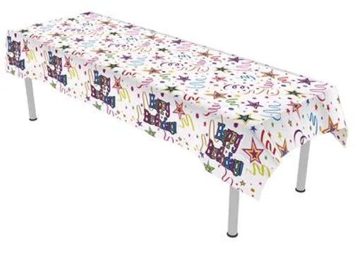 Oaktree Happy Birthday Colourfast Plastic Table Cover 137cm x 2.6m 1pc