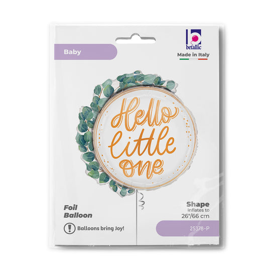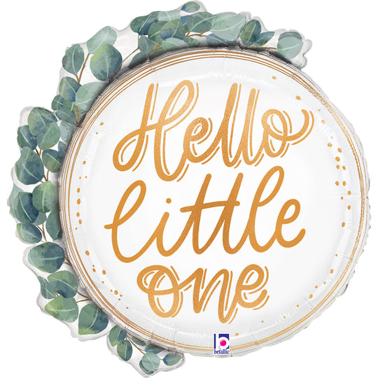26 inch Hello Little One Eucalyptus Wreath Foil Balloon Packaged