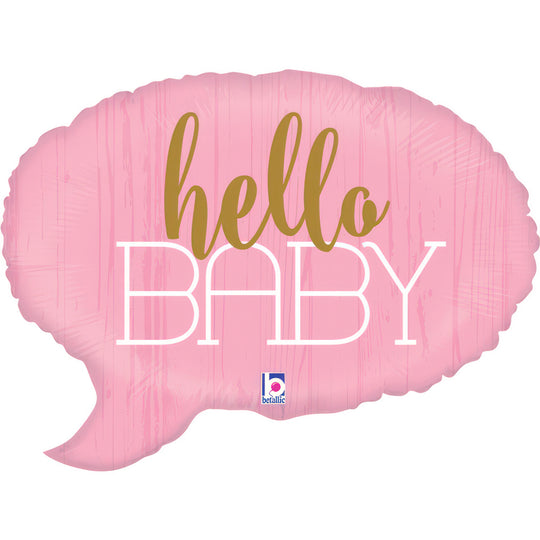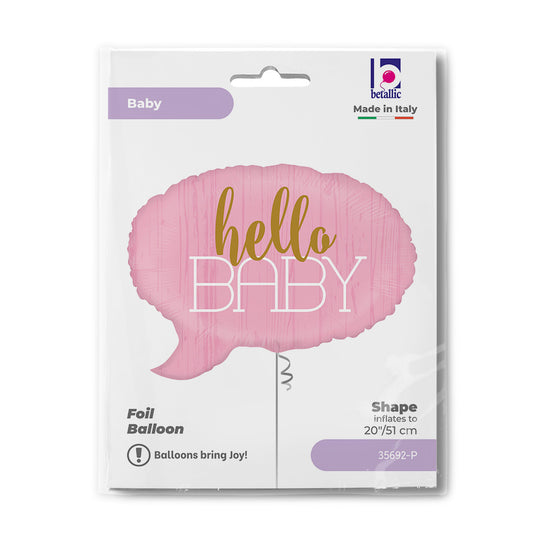 24 inch Pink Hello Baby Speech Bubble Foil Balloon Packaged