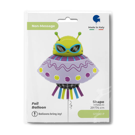 Make your party décor out of this world with our 29″ Funky Alien Foil Balloon. This colourful character features a bright green alien rocking retro blue sunglasses and flying in a vibrant purple UFO. Perfect for...Regular price £6.48 -
